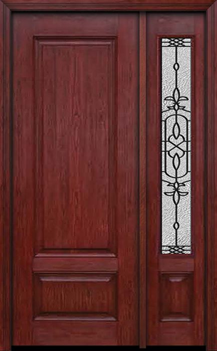 WDMA 42x96 Door (3ft6in by 8ft) Exterior Cherry 96in Two Panel Single Entry Door Sidelight Jacinto Glass