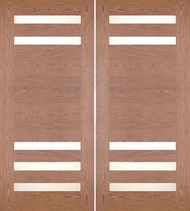 WDMA 60x80 Door (5ft by 6ft8in) Exterior Walnut 5 Lite Slimlite Contemporary Double Entry Door