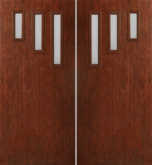 WDMA 60x80 Door (5ft by 6ft8in) Exterior Cherry Contemporary Modern 3 Lite Double Entry Door FC552