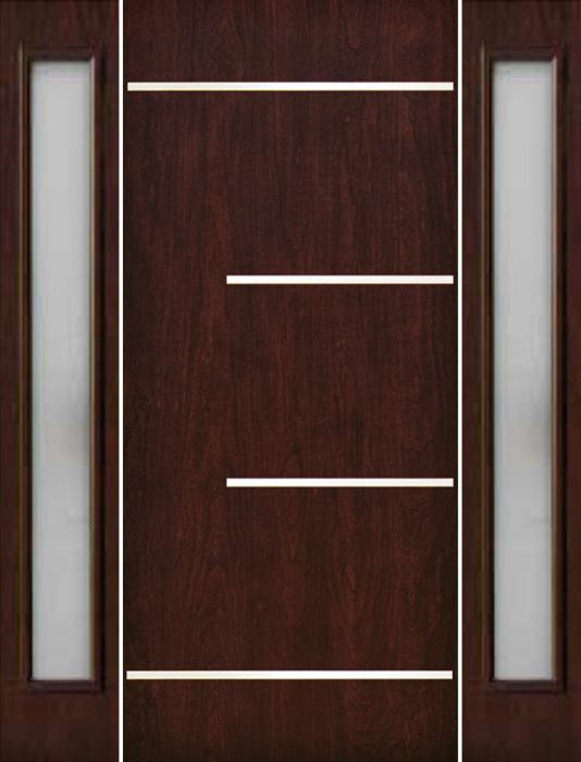 WDMA 64x80 Door (5ft4in by 6ft8in) Exterior Cherry Contemporary Stainless Steel Bars Single Fiberglass Entry Door Sidelights FC673SS