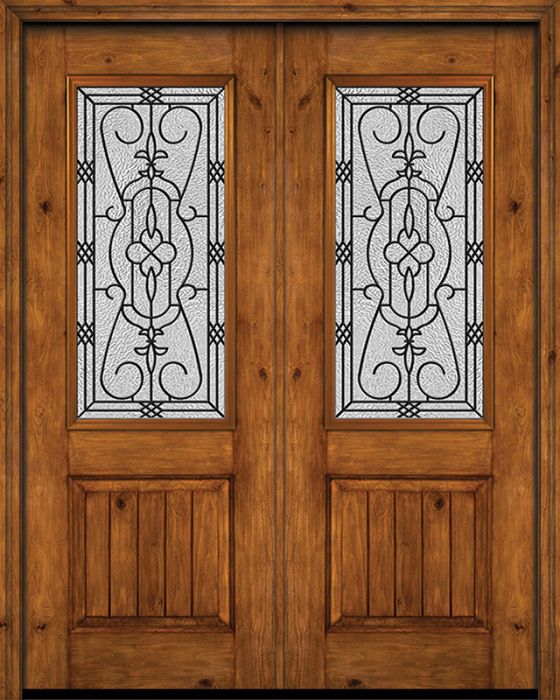 WDMA 72x96 Door (6ft by 8ft) Exterior Knotty Alder 96in Alder Rustic V-Grooved Panel 2/3 Lite Double Entry Door Jacinto Glass