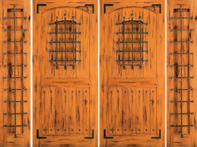 WDMA 96x80 Door (8ft by 6ft8in) Exterior Knotty Alder Front Double Door with Two Sidelights Alder Speakeasy Attributes Table