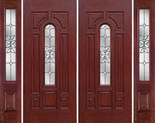 WDMA 96x80 Door (8ft by 6ft8in) Exterior Cherry Center Arch Lite Double Entry Door Sidelights HM Glass