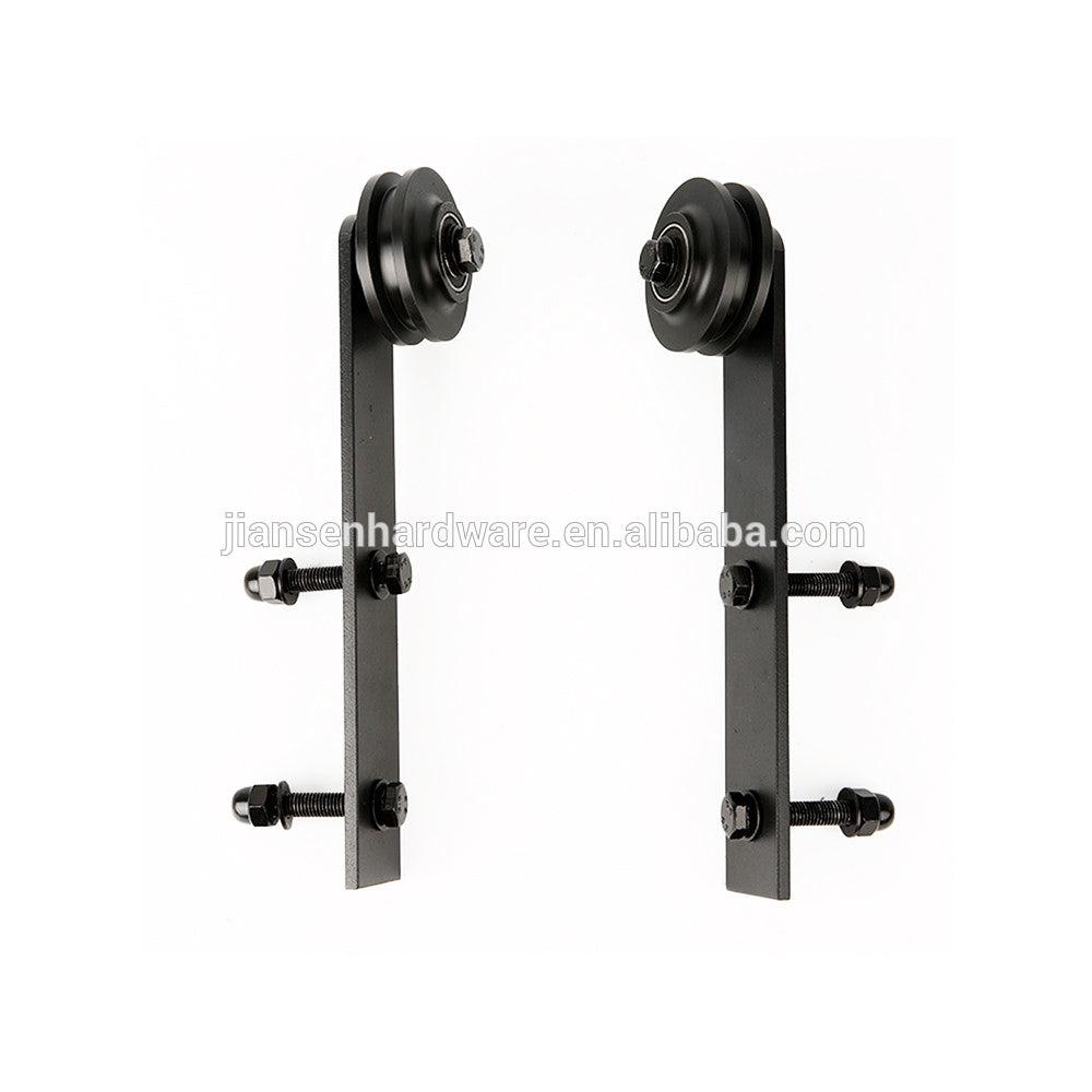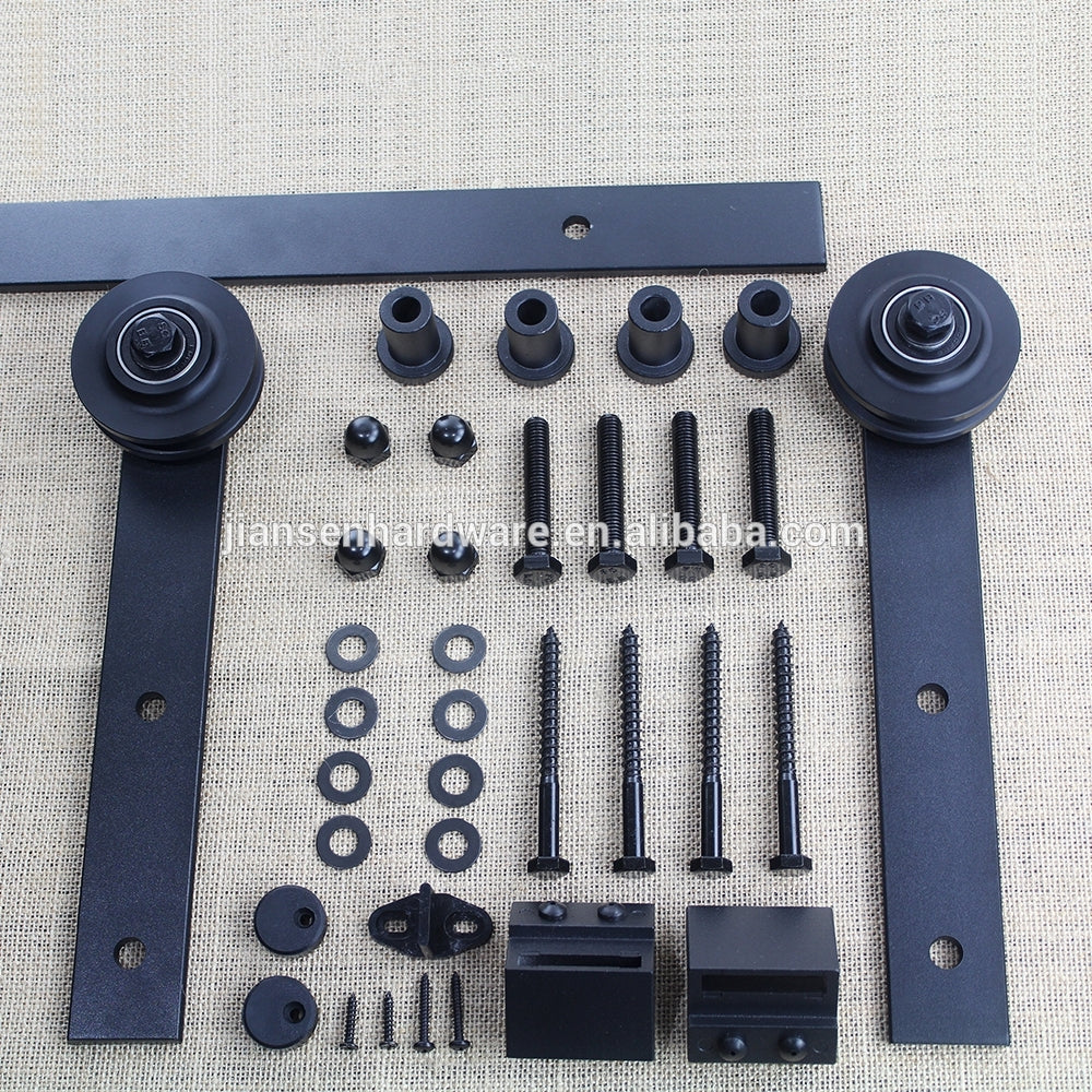 Wholesale Flat Track Bypass Sliding Barn Door System for Double Doors sale   Product Description       Description of Door Hardware  Name Antique Style Barn Door Hardware  Door material: wooden door    Door thickness: 35-40mm or 40-45mm  Door wide: less than 1m; Max door  weight:     150-300kg Material High Quality Steel  Condition New Surface Matt Black openings For use with openings up to 36" Advantage 1)Direct Manufacturer 2)Factory Price 3)High quality and excellent service 4)Precision Craftsmanship  5)Beautiful and affordable 6)Barn door hardware for wooden door,wood sliding door kits 7)This exclusive Iron Barn Door Hardware system will fit any of your  rolling door hardware needs....