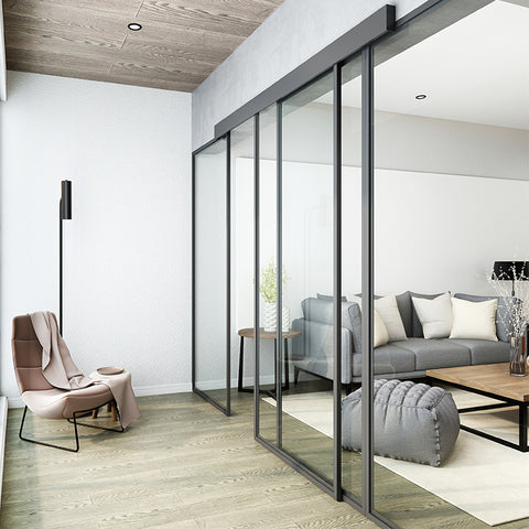 French Style Aluminum Iron Black Glass Sliding Steel Framed Barn Door Hardware on China WDMA
