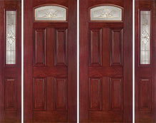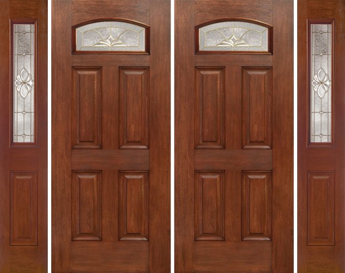 WDMA 88x80 Door (7ft4in by 6ft8in) Exterior Mahogany Camber Top Double Entry Door Sidelights HM Glass