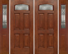 WDMA 88x80 Door (7ft4in by 6ft8in) Exterior Cherry Camber 3/4 Lite Double Entry Door Sidelights Greenfield Glass