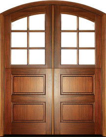 WDMA 72x108 Door (6ft by 9ft) Exterior Mahogany Craftsman 1 Panel 6 Lite Double Door/Arch Top