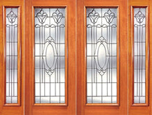 WDMA 108x84 Door (9ft by 7ft) Exterior Mahogany Double Doors 2-Sidelights Frank Lloyd Wright Glass Design