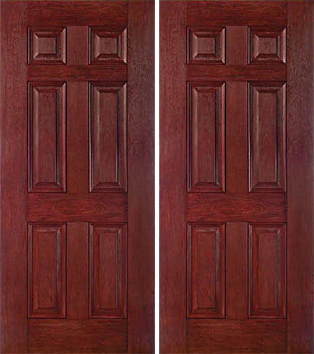WDMA 60x80 Door (5ft by 6ft8in) Exterior Cherry Six Panel Double Entry Door 1/2 Lite