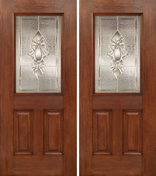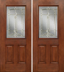 WDMA 60x80 Door (5ft by 6ft8in) Exterior Cherry Half Lite 2 Panel Double Entry Door BT Glass