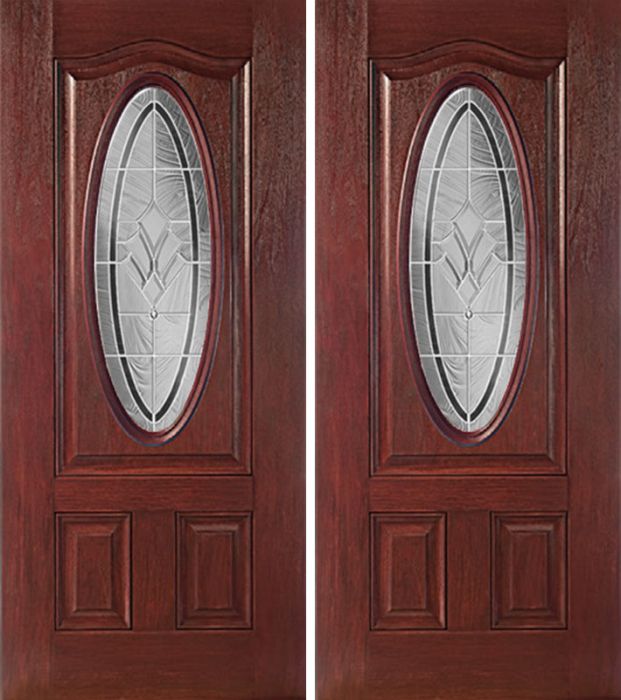 WDMA 60x80 Door (5ft by 6ft8in) Exterior Cherry Oval Three Panel Double Entry Door RA Glass Attributes Table