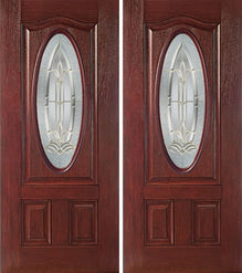 WDMA 60x80 Door (5ft by 6ft8in) Exterior Cherry Oval Three Panel Double Entry Door RA Glass