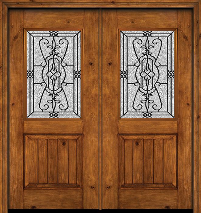 Please write your review of WDMA 60x80 Door (5ft by 6ft8in) Exterior Cherry Alder Rustic V-Grooved Panel 1/2 Lite Double Entry Door Jacinto Glass.