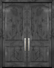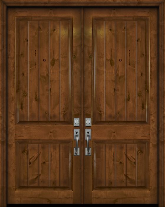 WDMA 64x96 Door (5ft4in by 8ft) Exterior Knotty Alder 96in Double 2 Panel V-Grooved Estancia Alder Door