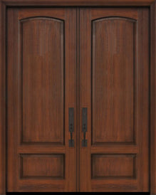 WDMA 64x96 Door (5ft4in by 8ft) Exterior Cherry IMPACT | 96in Double 2 Panel Arch V-Grooved or Knotty Alder Door