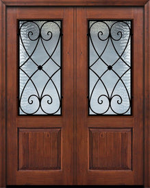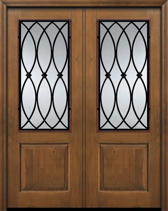 WDMA 64x96 Door (5ft4in by 8ft) Exterior Knotty Alder 96in Double 1 Panel 2/3 Lite La Salle Door