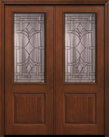 WDMA 64x96 Door (5ft4in by 8ft) Exterior Knotty Alder 96in Double 1 Panel 2/3 Lite Versailles Door