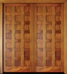 WDMA 68x78 Door (5ft8in by 6ft6in) Exterior Mahogany Full View 2 Lite over 1 Panel Double Door