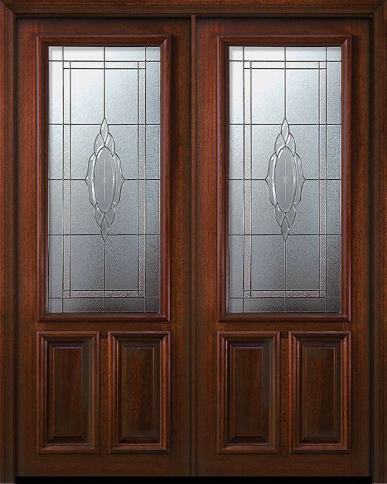 WDMA 72x96 Door (6ft by 8ft) Exterior Mahogany 36in x 96in Double 2/3 Lite Cameo 2 Panel DoorCraft Door