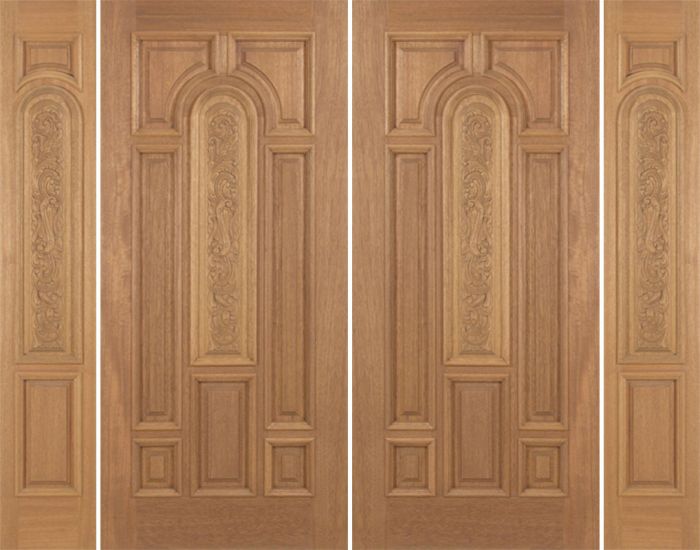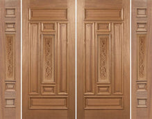 WDMA 88x80 Door (7ft4in by 6ft8in) Exterior Mahogany Revis Double Door/2side Carved Panel - 6ft8in Tall