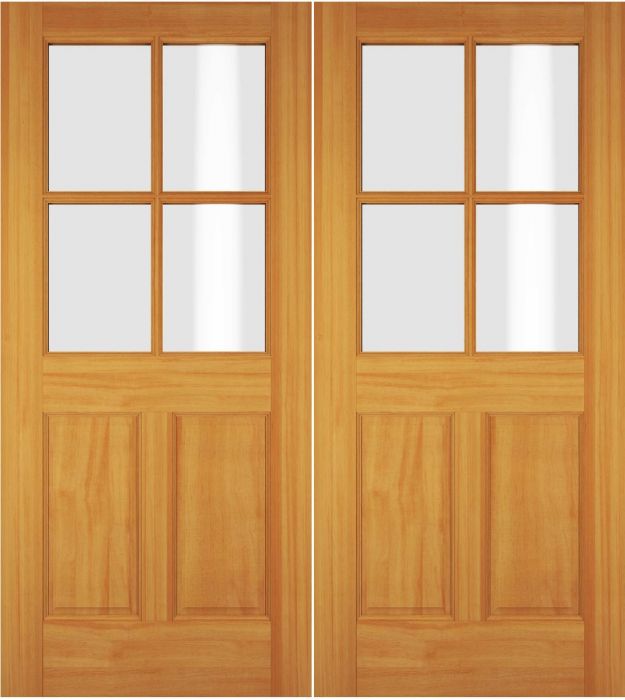 WDMA 68x78 Door (5ft8in by 6ft6in) Exterior Swing Hemlock Wood 1/2 Lite 4 Lite Double Door