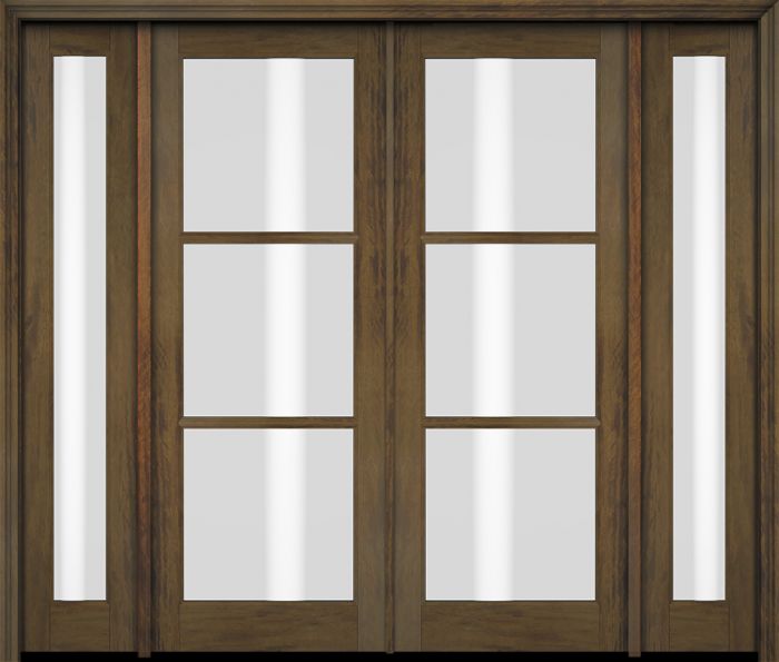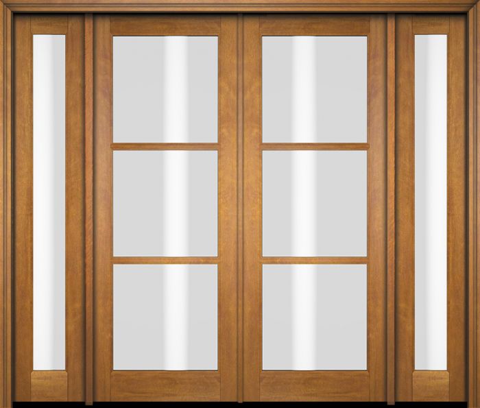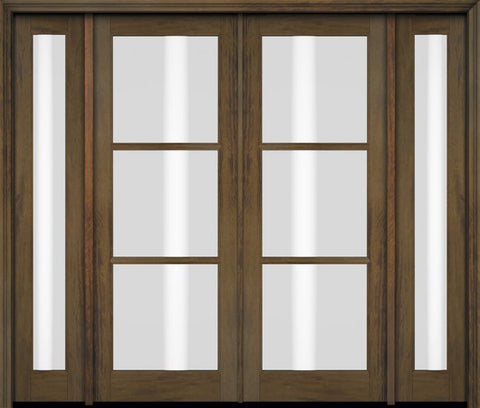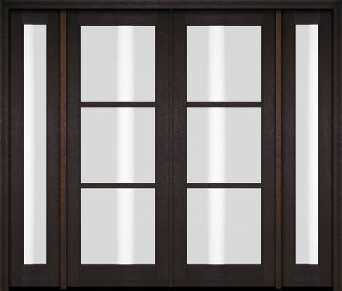 WDMA 76x80 Door (6ft4in by 6ft8in) Exterior Swing Mahogany 3 Lite TDL Double Entry Door Full Sidelights