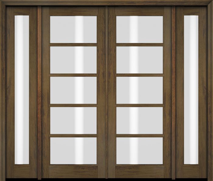 WDMA 76x80 Door (6ft4in by 6ft8in) Exterior Swing Mahogany 5 Lite TDL Double Entry Door Full Sidelights