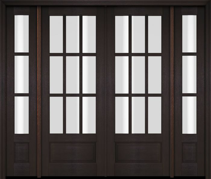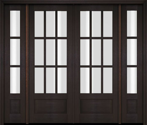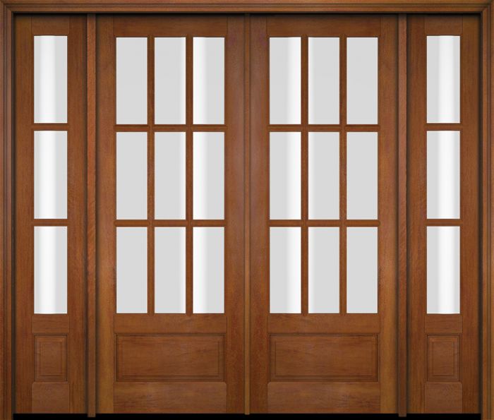 WDMA 86x80 Door (7ft2in by 6ft8in) Exterior Swing Mahogany 3/4 9 Lite TDL Double Entry Door Sidelights