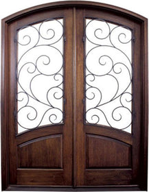 WDMA 64x96 Door (5ft4in by 8ft) Exterior Swing Mahogany Aberdeen Double Door/Arch Top w Redwood Iron