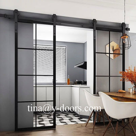 Product Description Item: Professional Wrought Iron French Entry Barn Sliding Glass Door Designs Material: Wrought iron / cast iron / steel Surface treatment: Powder coating / painting / baking finished MOQ: No limited Big quantity,Big Discount Finshing: Matt Black Special finishing: Anti-rust galvanized Size: Standard 1000mm*1000mm / special are customized...