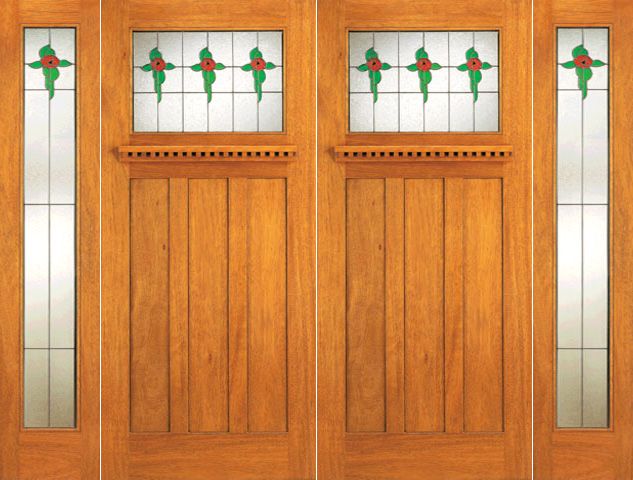 WDMA 108x84 Door (9ft by 7ft) Exterior Mahogany Stained Glass Mission Style Double Door Two Full Sidelights