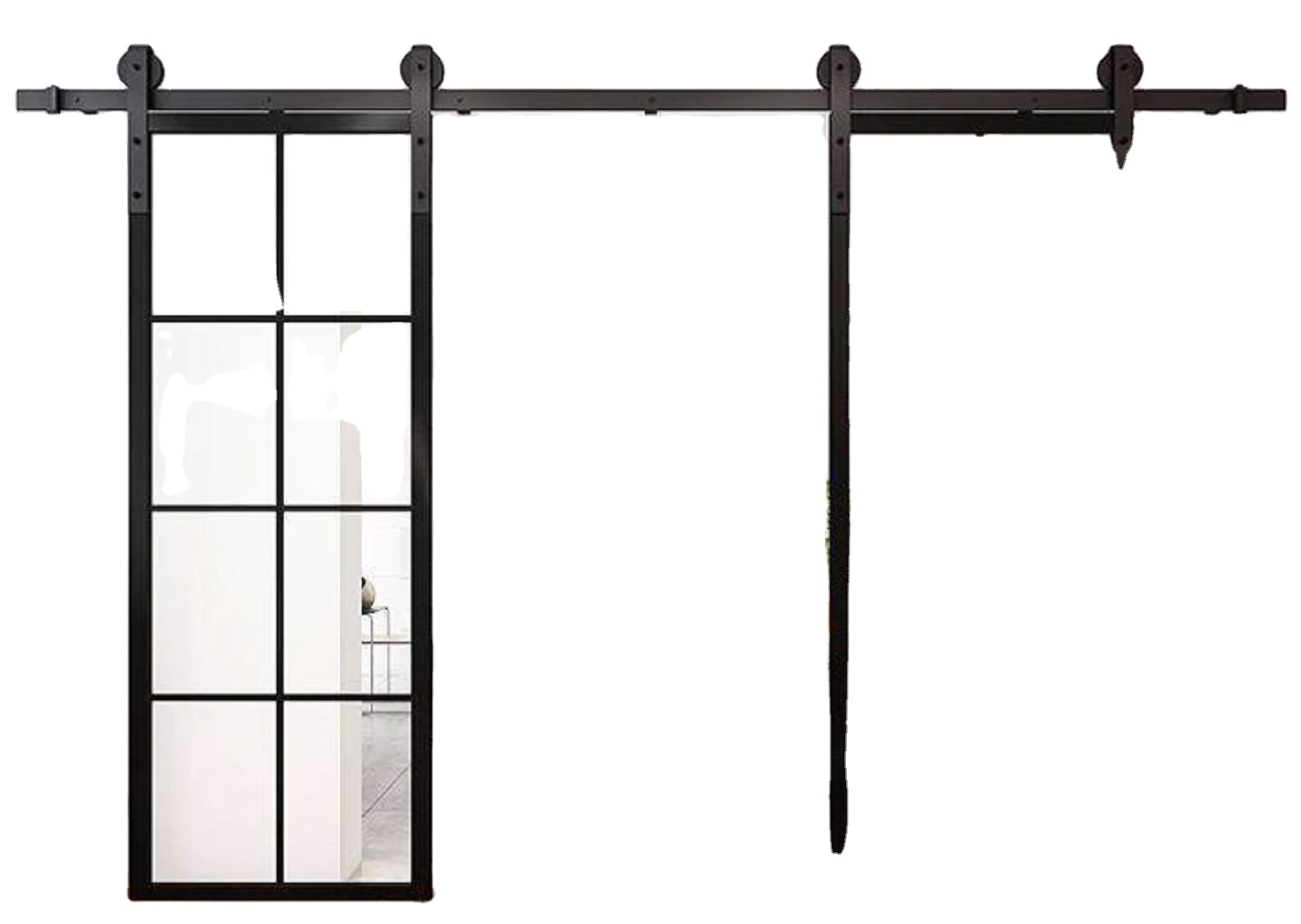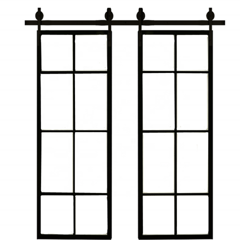 WDMA French sliding door with steel barn door hardware kit complete set, Steel sliding door