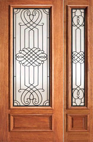 WDMA 38x80 Door (3ft2in by 6ft8in) Exterior Mahogany Door One Sidelight Leaf Scrollwork Ironwork Glass