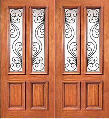 WDMA 72x96 Door (6ft by 8ft) Exterior Mahogany Camber Lite External Double Door with Ironwork Attributes Table