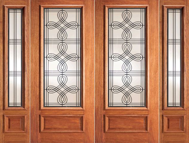 WDMA 108x84 Door (9ft by 7ft) Exterior Mahogany Double Door with Two Sidelights Celtic Ironwork Glass