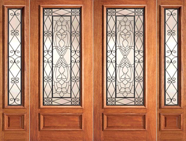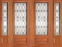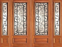 WDMA 108x84 Door (9ft by 7ft) Exterior Mahogany Ironwork Glass Scrollwork Double Door Two Sidelights