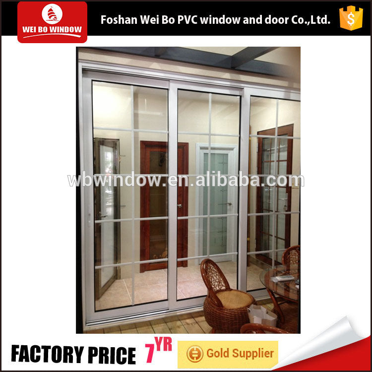 Large size french style sliding door upvc profile tempered glass door   PVC/UPVC profile brand LG,Conch,Veka,ZY... Series 60mm PVC/UPVC profile thickness 2.0mm-3mm Reinforcement steel  thickness 1.2mm,1.5mm Color white,zelkova,black walnut,teak,and other laminated wooden colors Glass Type Low-E glass/tempered glass/insulated glass/tinted glass Glass Thickness 5mm,6mm,8mm,10mm,12mm,etc. Glazed single/double/triple glass Color Clear/Grey/Blue/Light Green,etc. Hardware Handle,transmission,(friction) hinge 1)Imported brands like Germany ROTO,G-U,Korean LG 2)Chinese famous brands like Yuanda,LianXin,Chunguang 3)Customers' stipulated brands are available. Seals system EPDM rubber sealing strip Corner welding Beautiful welding,45 degrees.international  standards and  with steel reinforcement.      Tech Data Shown Below 1) Acoustical insulation: 36 dB 2) K-value of window: 1. 8 w/ m2. K 3) Wind resistance: 5000 Pa...