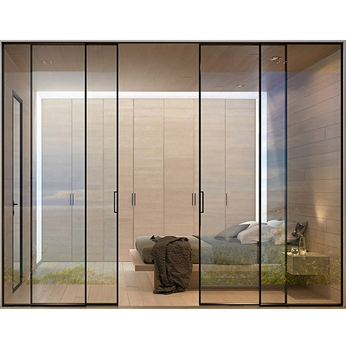 Place of Origin:Guangdong, China Open Style:Sliding Position:Interior Surface Finishing:Finished Type:SLIDING DOORS Door Material:Aluminum alloy Sliding Door Type:Partition Doors Material:Aluminum Alloy+Glass+Accessories Color:Brow/White/Dark Grey/Black Size:Customized Size Hardware:Chinese Top Brand/Germany Brand Glass:Single, double, tempered, laminated, frosted glass Glass Type:Low -E or normal Surface treatment:Powder coating,anodizing,electrophoresis,wooden grain etc Warranty:10 Years Application:Residential Certificate:ISO9001 CE AS2047...
