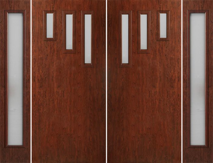 WDMA 112x80 Door (9ft4in by 6ft8in) Exterior Cherry Contemporary Modern 3 Lite Double Entry Door Sidelights FC532