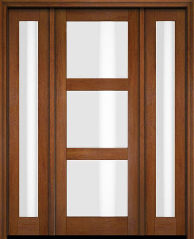 WDMA 52x96 Door (4ft4in by 8ft) Exterior Swing Mahogany Modern 3 Lite Shaker Single Entry Door Sidelights