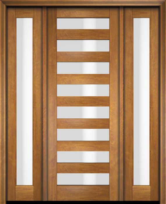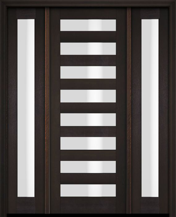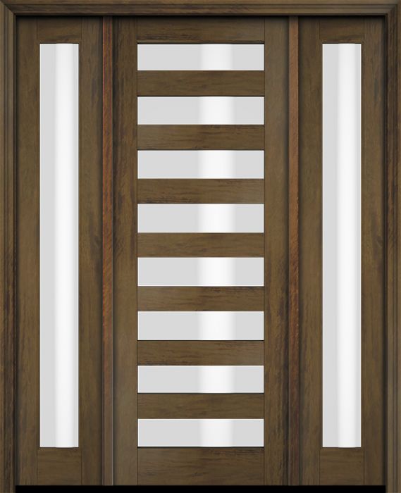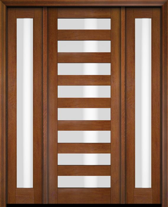 WDMA 52x96 Door (4ft4in by 8ft) Exterior Swing Mahogany Modern Slimlite Glass Shaker Single Entry Door Sidelights