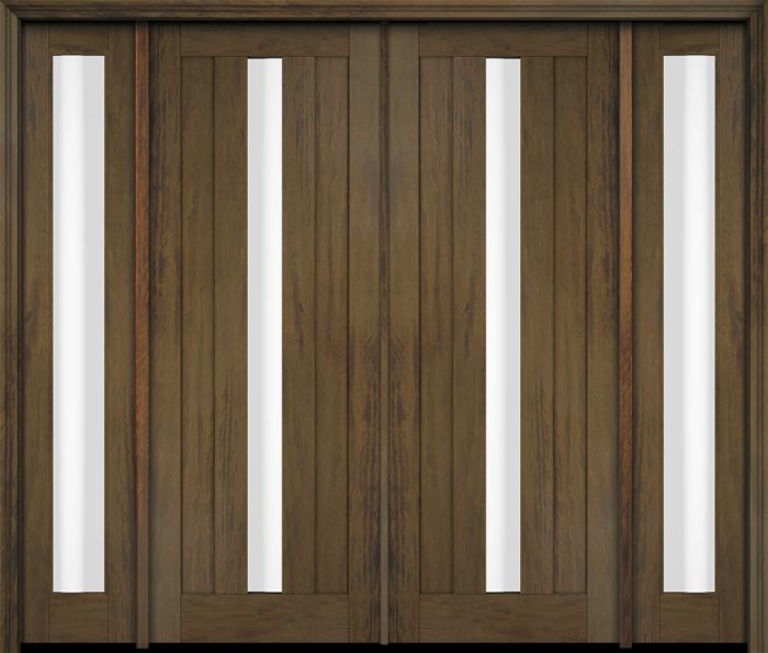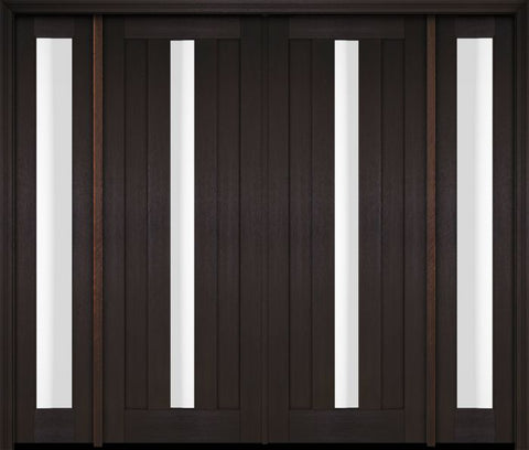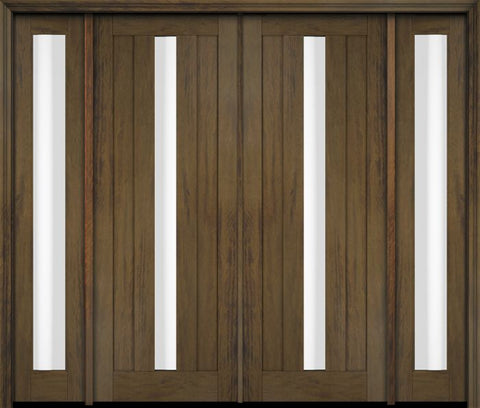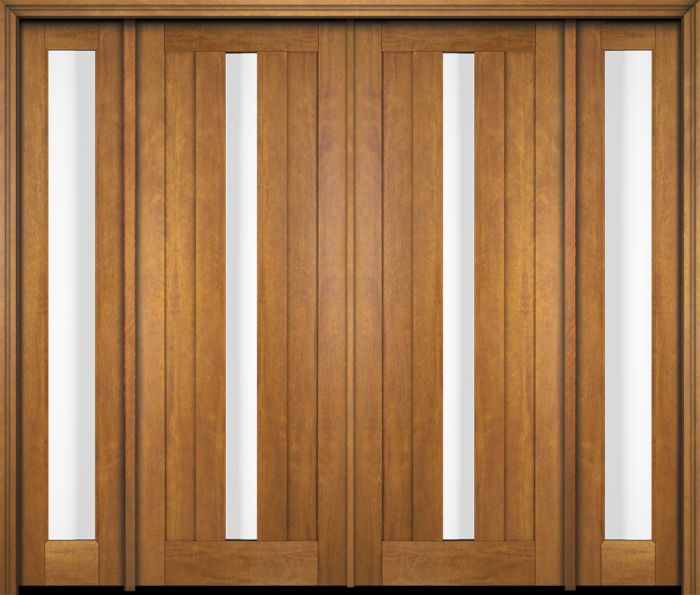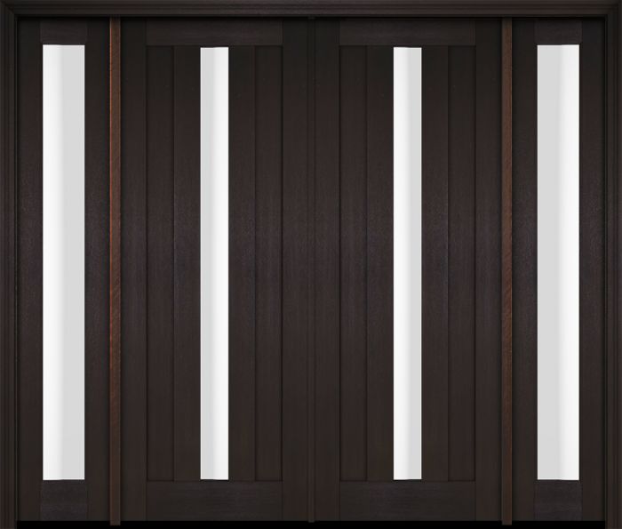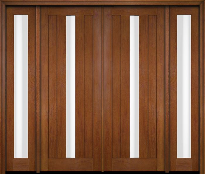 WDMA 76x80 Door (6ft4in by 6ft8in) Exterior Swing Mahogany Modern 2 Flat Panel Center Lite Shaker Double Entry Door Sidelights