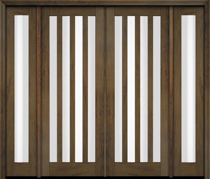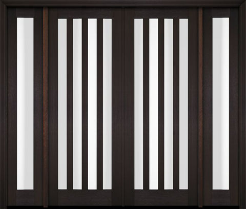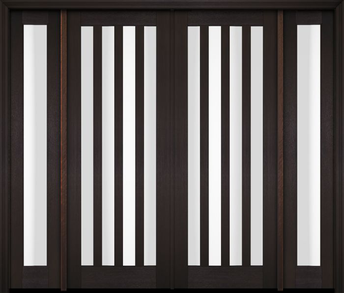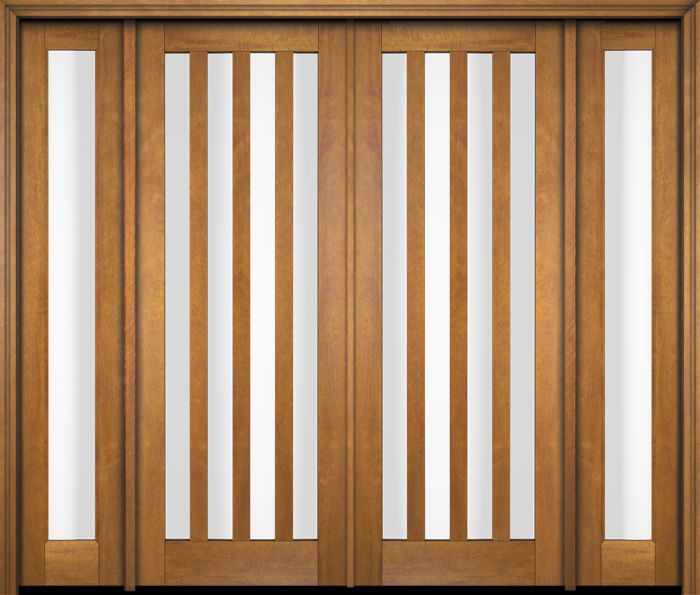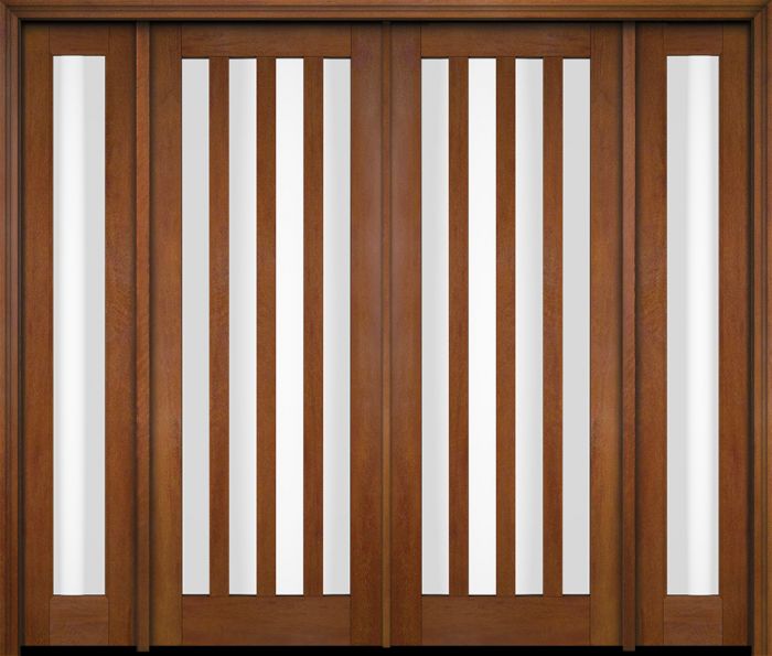WDMA 76x80 Door (6ft4in by 6ft8in) Exterior Swing Mahogany Modern Slim 4 Glass Shaker Double Entry Door Sidelights