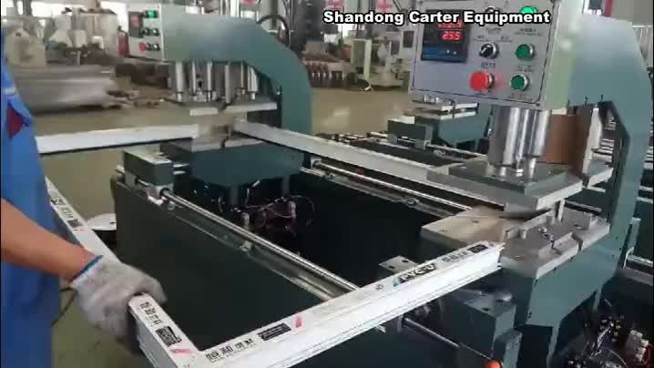 aluminum window fabrication equipment pvc window frame fabrication 3 heads welding machine Product Description   FEATURE 1.       Welding  ⊥∠ many kinds shapes combined with each other, and maybe welded to range of arbitrary angle. 2.       Three heads can work independently and can also be linked, flexible combination, high work efficiency....