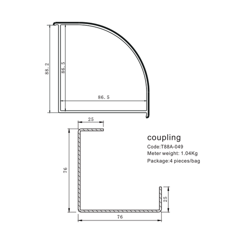 Product Description Best optional 60/88 sliding system auxiliary UPVC door Best optional 60/88 sliding system auxiliary UPVC door coupling Code:T88A-049 Meter weight:1.04Kg Package:4 pieces/bag Product Uses Best optional 60/88 sliding system auxiliary UPVC door Best optional 60/88 sliding system auxiliary UPVC door...