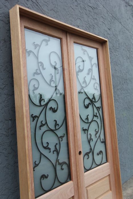 Please write your review of WDMA 52x96 Door (4ft4in by 8ft) Exterior Mahogany Door Two Sidelights Leaf Scrollwork Ironwork Glass.