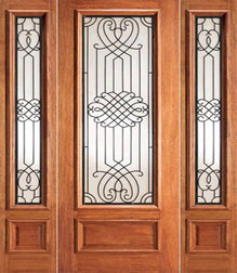 WDMA 52x96 Door (4ft4in by 8ft) Exterior Mahogany Door Two Sidelights Leaf Scrollwork Ironwork Glass