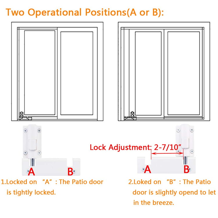 Product Paramenters Patio Sliding Door Security Foot Lock Kick Lock, Fits on Top Rail-Childproof Patio Door Guardian-or Bottom Rail-Foot Operated PRODUCT DESCRIPTION ● Effectively secures and childproofs sliding patio doors in homes. ● Created with home security in mind, this door foot lock is also ideal for childproofing and child...
