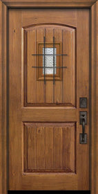 WDMA 32x80 Door (2ft8in by 6ft8in) Exterior Knotty Alder IMPACT | 80in 2 Panel Arch Door with Speakeasy